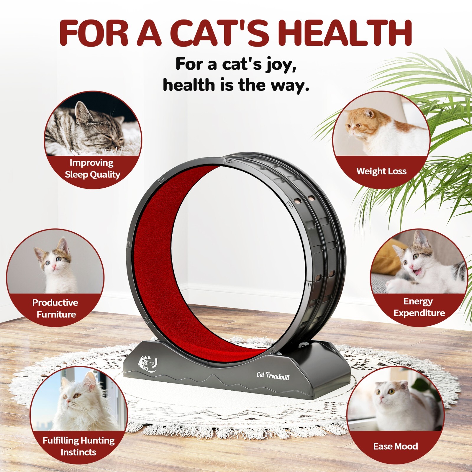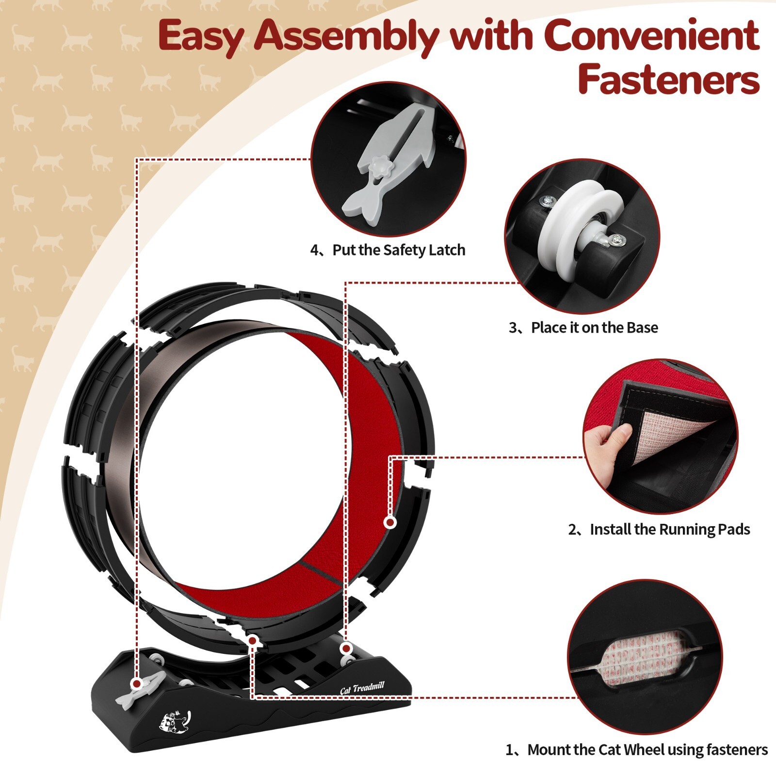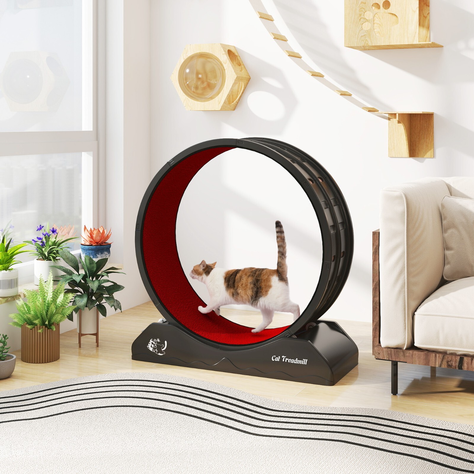 If you are looking for a sturdy and reliable option for a cat exercise wheel, this Jaxpety Modern Cat Wheel is highly recommended for your indoor feline families to overcome their sedentary lifestyle. With a stable base and nonslip inside carpet, cats of all sizes can walk and run elegantly to spin the large wheel smoothly and safely, helping keep cats physically active and reducing boredom.